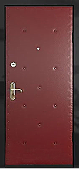 Технология производства дверей с винилискожей следующая. Варится стальной каркас двери, к нему приваривается металлическое полотно (возможно и без металлического листа), на него укладывается лист оргалита, слой утепляющего материала (в случае «объемной» обивки слой потолще, если «не объемна» - потоньше), на него укладывается винилискожа и делается рисунок.
