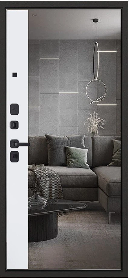 Надежная входная Дверь Scandi с зеркалом премиум класса по цене 45 070 руб. Большая толщина стали защитит от проникновения в ваш дом, квартиру или коттедж. Используется очень качественная фурнитура: замки, цилиндры, ручки, защелки. Покрытие и отделка двери изготовлено под внимательным контролем производителя. Дверь имеет долгий срок службы и гарантию.