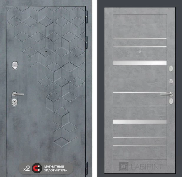 Дизайнерская входная Дверь Бетон класса Люкс с несколькими листами стали, звукоизоляцией и теплоизоляцией. Утепленный короб и полотно защитят от сквозняков и шумов. Модель не только надежная, комфортная, защищенная и высочайшего качества, но и очень красивая! Будет отлично сочетаться с интерьером дома, квартиры или офиса. Сейчас действует выгодное предложение по цене: 55 470 руб.