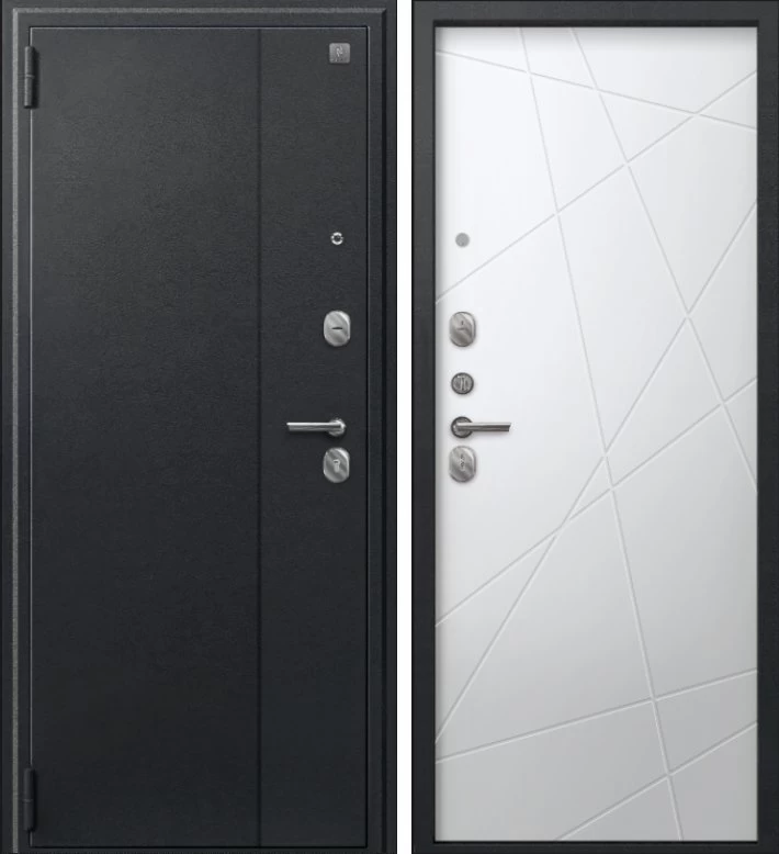 Надежная входная Дверь A-03 черный сатин - кашемир белый премиум класса по цене 30 270 руб. Большая толщина стали защитит от проникновения в ваш дом, квартиру или коттедж. Используется очень качественная фурнитура: замки, цилиндры, ручки, защелки. Покрытие и отделка двери изготовлено под внимательным контролем производителя. Дверь имеет долгий срок службы и гарантию.